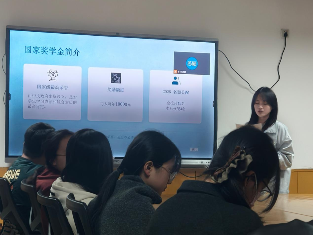 此次国家奖学金宣讲活动,既开展了全面精准的政策科普,明晰申报要求、提供报考指引,也搭建起朋辈互助、榜样引领的交流桥梁。活动不仅帮助全系同学全面掌握国奖申报流程与相关要求,更以优秀学子的奋斗故事激励全体同学勤学善思、笃行不怠。依托榜样示范作用涵养优良学风,引导大家在知行合一中夯实专业基础、锤炼综合素养,以昂扬向上的青春姿态奔赴成长新征程。