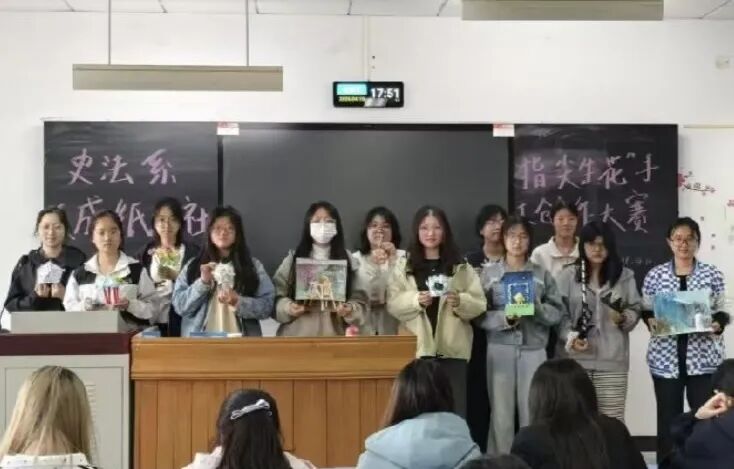 为丰富校园文化生活、弘扬中华优秀传统手工技艺、激发青年学子的创造力、提升动手实践能力,搭建手工爱好者的交流展示平台,营造美育育人、积极向上的校园氛围,太阳成集团tyc151cc文成纸艺社精心组织,于2026年4月10日下午五点在北院文403教室成功举办了别开生面的“指尖生花”手工创作大赛。