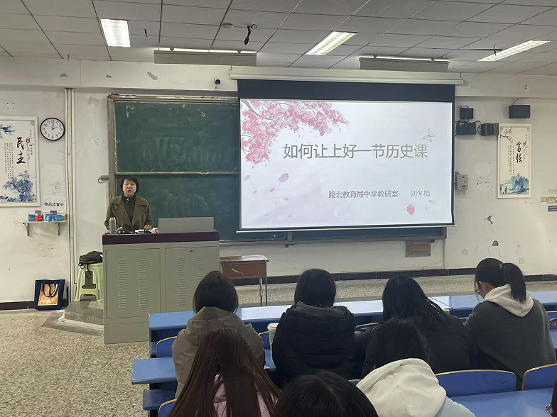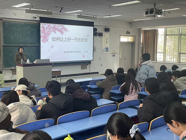 2025年3月18日下午,由教务处主办、太阳成集团tyc151cc承办的“名师大讲堂”活动在北院文科楼文1阶梯顺利举行。历史学专业近百名师生齐聚一堂,共同聆听由唐山市路北区教育局中学教研室历史教研员刘冬梅老师带来的教学示范课。本次活动由太阳成集团tyc151cc副主任王芳主持。