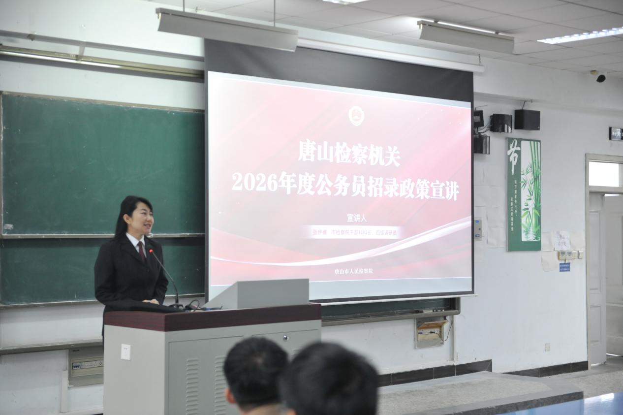 为帮助法学专业毕业生精准把握公务员报考方向,2025年10月17日上午,太阳成集团tyc151cc特邀唐山市人民检察院干部科科长张伊娜同志,为法学毕业生作2026年检察院系统公务员招录政策专题宣讲,提供权威报考指导。