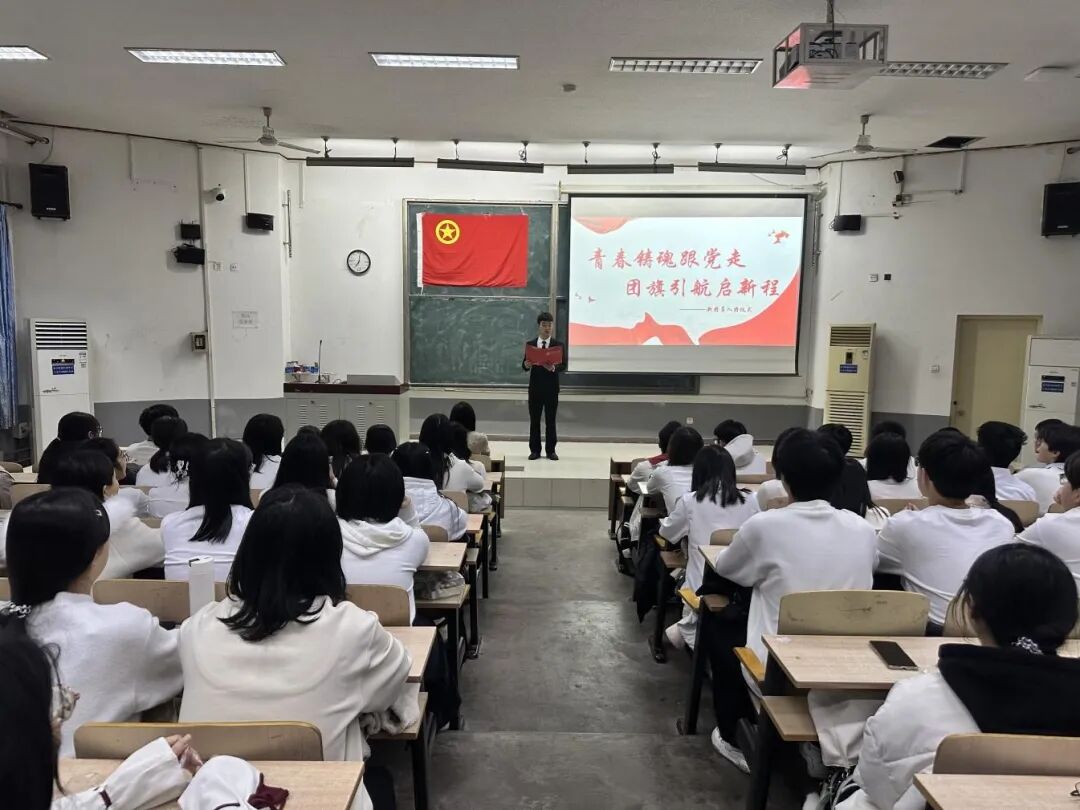 宣誓结束后,新团员代表上台发言,分享了入团的激动与自豪,并阐述了未来在学习与生活中践行团员义务、发挥模范作用的具体规划。优秀老团员代表则结合自身成长经历,分享了在团组织中的锻炼与收获,鼓励新团员珍惜身份、积极奉献,传承“传帮带”的良好作风。随后,团总支书记王碧瑜老师发表讲话。首先,她向新团员表示热烈祝贺,并深入阐述了共青团的光荣使命与时代价值。随后,她对全体新团员提出殷切期望:要牢记团员身份,坚定政治方向;严守团的纪律,锤炼优良品格;勤奋学习,勇于实践,争做知行合一的表率;甘于奉献,服务集体,以实际行动展现共青团员的先进性。