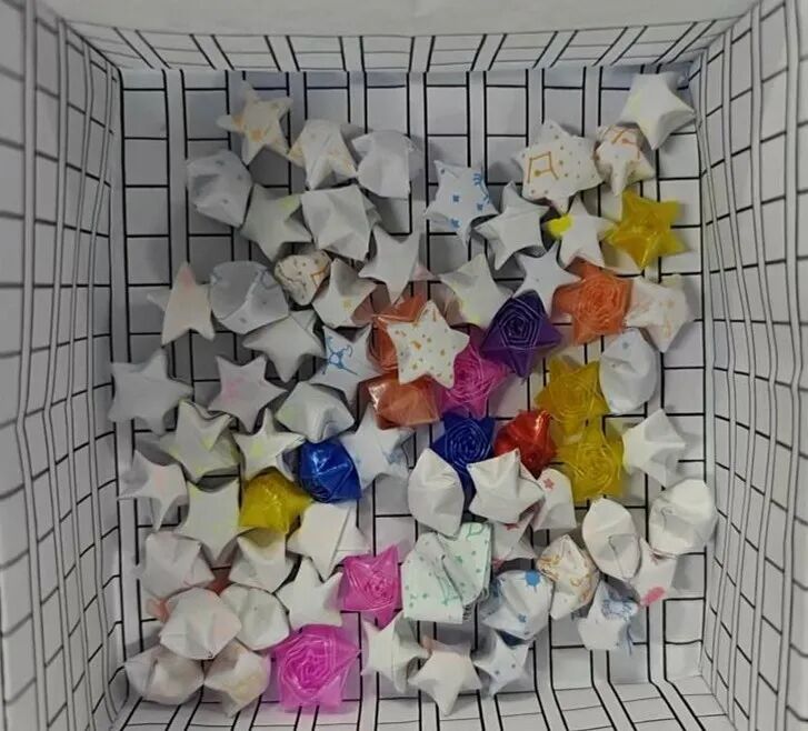 活动现场暖意融融,彩纸与塑料管在桌面上整齐排列,成员们围坐在一起,开启了一场与星光的邂逅。折星的过程看似简单,却考验着大家的耐心与巧思。无论是线条利落的塑料星星,还是纹理细腻的纸星星,都需要经过弯折、缠绕、固定等步骤。大家从生疏的尝试开始,跟着教程一步步摸索,指尖的塑料管在弯折中逐渐显露出棱角分明的模样,彩纸则在翻折间绽放出缤纷的光彩。有的成员在星星上点缀小巧的挂饰,有的则用不同颜色的材料拼接出渐变效果,每一颗星星都被赋予了独特的创意与巧思。